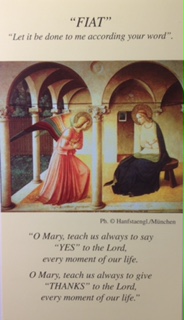 Prayer Card PICTURE OF THE ANNUNCIATION WITH FIAT PRAYER Reference Number: 052 Price: $1.00 for 5 cards Order Form |